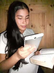 Tatiana Tovar, estudiante Senior del Centro de San Miguelito nos comparte que: “La oportunidad de continuar con nuestra educación de modo virtual, representa un privilegio y una oportunidad para seguir superándonos. Los espacios de opinión y comunicación generados mediante el uso de plataformas virtuales, nos permite hacer consultas sobre el material de aprendizaje y aún más, nos permite asesoría psicológica en estos momentos de incertidumbre que atravesamos.”